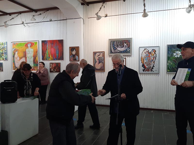 საქართველოს მხატვართა კავშირის თავჯდომარის — გურამ ცერცვაძის, ხელშეწყობითა და დაფინანსებით გაზაფხულზე გაიმართა გურიის მხატვართა ნამუშევრების გამოფენა თბილისის გალერეა “ოპიზარში”. გამოიცა გამოფენაზე წარმოდგენილი ნაშრომების ამსახველი კატალოგი, რომელიც გურიის შემოქმედებითი კავშირის თავჯდომარემ — თამაზ დარჩიამ, მონაწილე მხატვრებს გადასცა.~With the support and funding of the Chairman of the Union of Artists of Georgia — Guram Tsertsvadze, an exhibition of works by artists from Guria was held in the Tbilisi gallery “Opizar” in the spring. A catalogue of the works presented at the exhibition was published and presented to the participating artists by the Chairman of the Creative Union of Guria — Tamaz Darchia.~При поддержке и финансировании председателя Союза художников Грузии — Гурама Церцвадзе, весной в тбилисской галерее «Опизар» прошла выставка работ художников из Гурии. Был издан каталог работ, представленных на выставке, который вручил художникам-участникам председатель Творческого союза Гурии — Тамаз Дарчия.