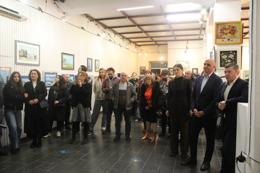 გამოფენის გახსნისას, დამსწრე საზოგადოებას სიტყვით მიმართეს მერაბ ბერძენიშვილის სახელობის თანამედროვე სახვითი ხელოვნების ცენტრის დირექტორმა – გრაფიკოსმა ავთანდილ თავართქილაძემ; ოზურგეთის მერმა, ბატონმა პაატა კუნჭულიამ; ბათუმელმა მხატვრებმა: ნოდარ კვირკველიამ და ირინა ტორონჯაძემ; გურიის რეგიონის შემოქმედებითი კავშირის თავჯდომარემ თამაზ დარჩიამ და სხვა სტუმრებმა.~At the opening of the exhibition, speeches were delivered by Avtandil Tavartkiladze, graphic artist and director of the Contemporary Visual Arts Center named after Merab Berdzenishvili; Paata Kunchulia, Mayor of Ozurgeti; Batumi artists Nodar Kvirkvelia and Irina Toronjadze; Tamaz Darchia, Chairman of the Creative Union of the Guria region; and other guests.~На открытии выставки с приветственными речами выступили директор Центра современного изобразительного искусства имени Мераба Бердзенишвили — график Автандил Таварткиладзе; мэр Озургети Паата Кунчулиа; батумские художники Нодар Квирквелия и Ирина Торонджадзе; председатель творческого союза Гурийского региона Тамаз Дарчия и другие гости.
