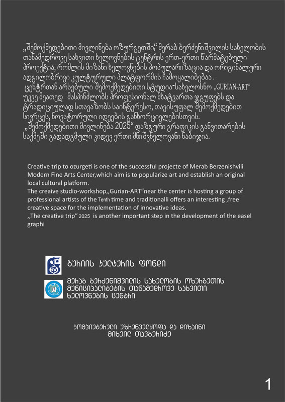 “შემოქმედებითი მივლინება 2025“, დაზგური გრაფიკის განვითარების საქმეში გადადგმული კიდევ ერთი მნიშვნელოვანი ნაბიჯია.~”Creative trip in Ozurgeti 2025” is another important step taken in the development of easel graphics.~«Творческая командировка в Озургети 2025» — еще один важный шаг в развитии станковой графики.