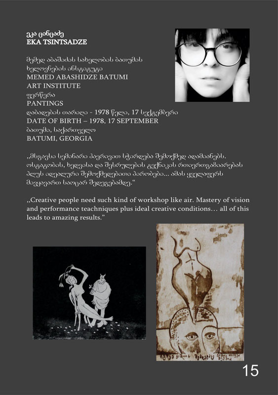 ცენტრთან არსებული შემოქმედებითი სტუდია-სახელოსნო “GURIAN-ART” უკვე მეათედ მასპინძლობს პროფესიონალ მხატვართა ჯგუფს და ტრადიციულად სთავაზობს საინტერესო, თავისუფალ შემოქმედებით სივრცეს, ნოვატორული იდეების განხორციელებისთვის.~The creative studio-workshop “GURIAN-ART” located near the center hosts a group of professional artists for the tenth time and traditionally offers an interesting, free creative space for the implementation of innovative ideas.~Творческая студия-мастерская «ГУРИАН-АРТ», расположенная недалеко от центра, уже в десятый раз принимает группу профессиональных художников и традиционно предлагает интересное, бесплатное творческое пространство для реализации инновационных идей.